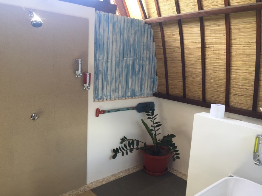 Das Hotel ist unter österreichischer Leitung und das merkt man auch 🙂 überall wird ständig renoviert und ausgebessert. Die Zimmer verfügen über modernste Klimaanlagen und das Bad erfüllt auch die europäischen Standards. Unser Lumbung hatte sogar ein offenes Bad…