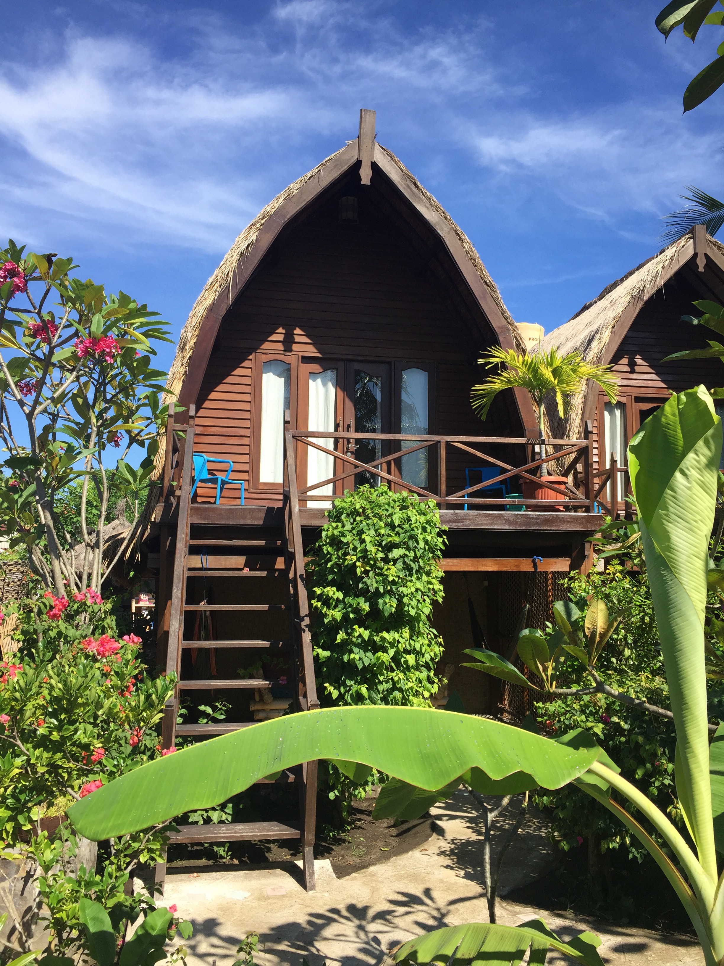 Uns war bewusst dass Gili Trawangan die Partyinsel ist. Wir waren jedoch zum Schnorcheln und Tauchen dort. Dazu haben wir uns das Mango Dive and Bungalows ausgesucht, was am nördlichen Ende der Partymeile liegt. Hier haben wir einen Lumbung bekommen, ein traditioneller Reisspeicher.