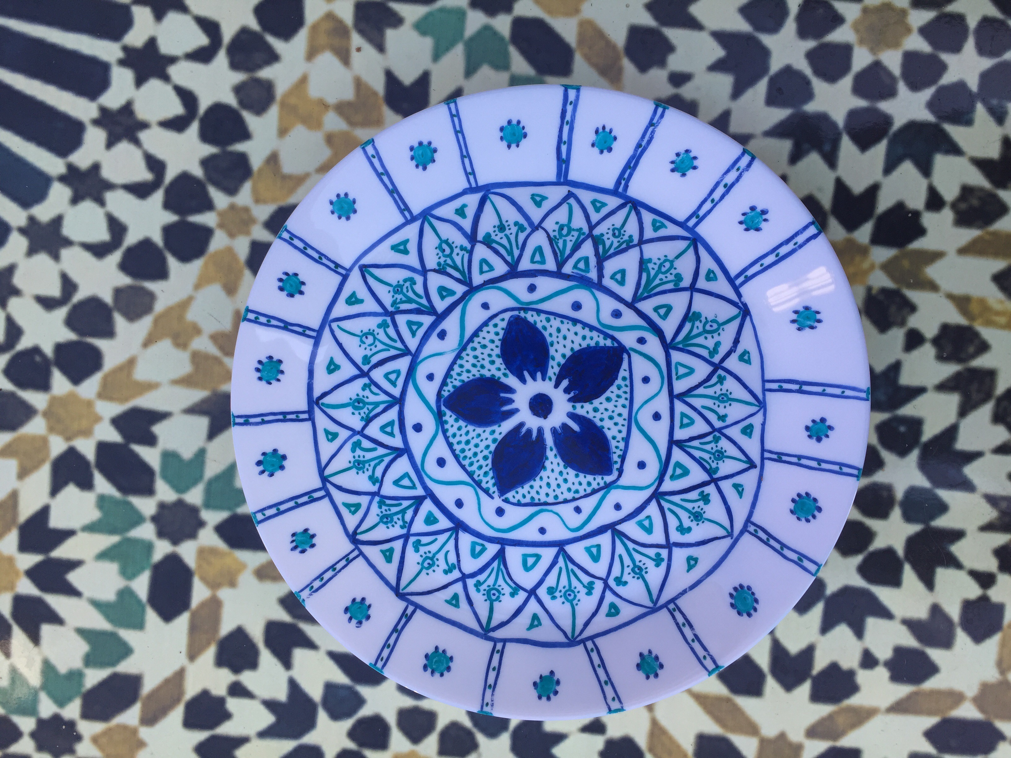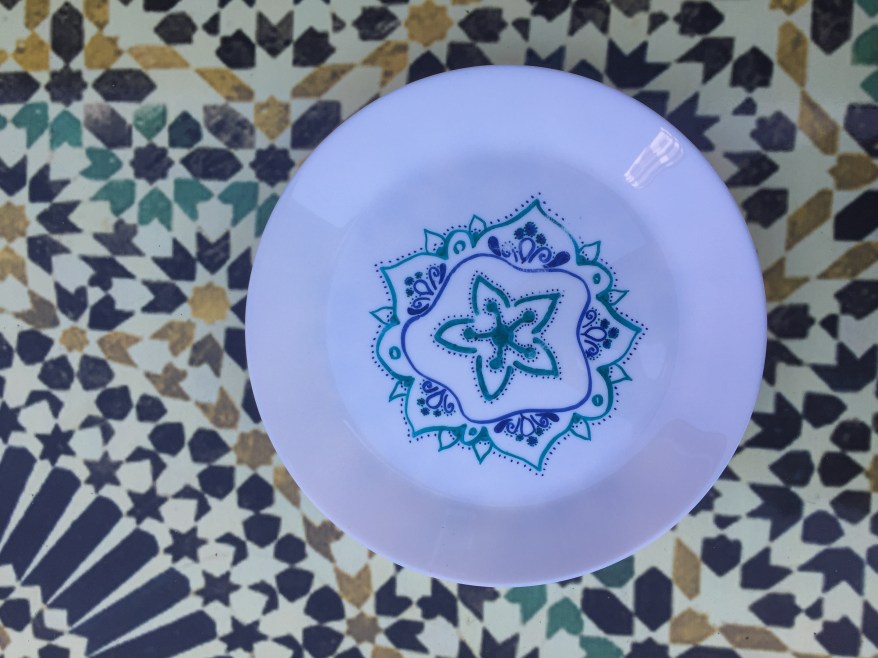 Bei den Tellern habe ich mich von Google inspirieren lassen. Ich wollte Teller die zu unserer Terasse im marokkanischen Stil passen.