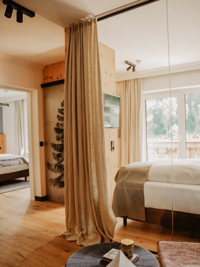 Die ersten Tage haben wir in Saalbach im Hotel Tiroler Buam verbracht. Das familiengeführte Hotel legt sehr viel Wert auf Regionalität und Nachhaltigkeit. Wir haben uns direkt bei der Ankunft super wohl gefühlt, und auch unser Hund wurde mit Körbchen und Napf auf dem Zimmer willkommen geheißen….und auf uns wartete ein traumhafter Blick in die Berge.