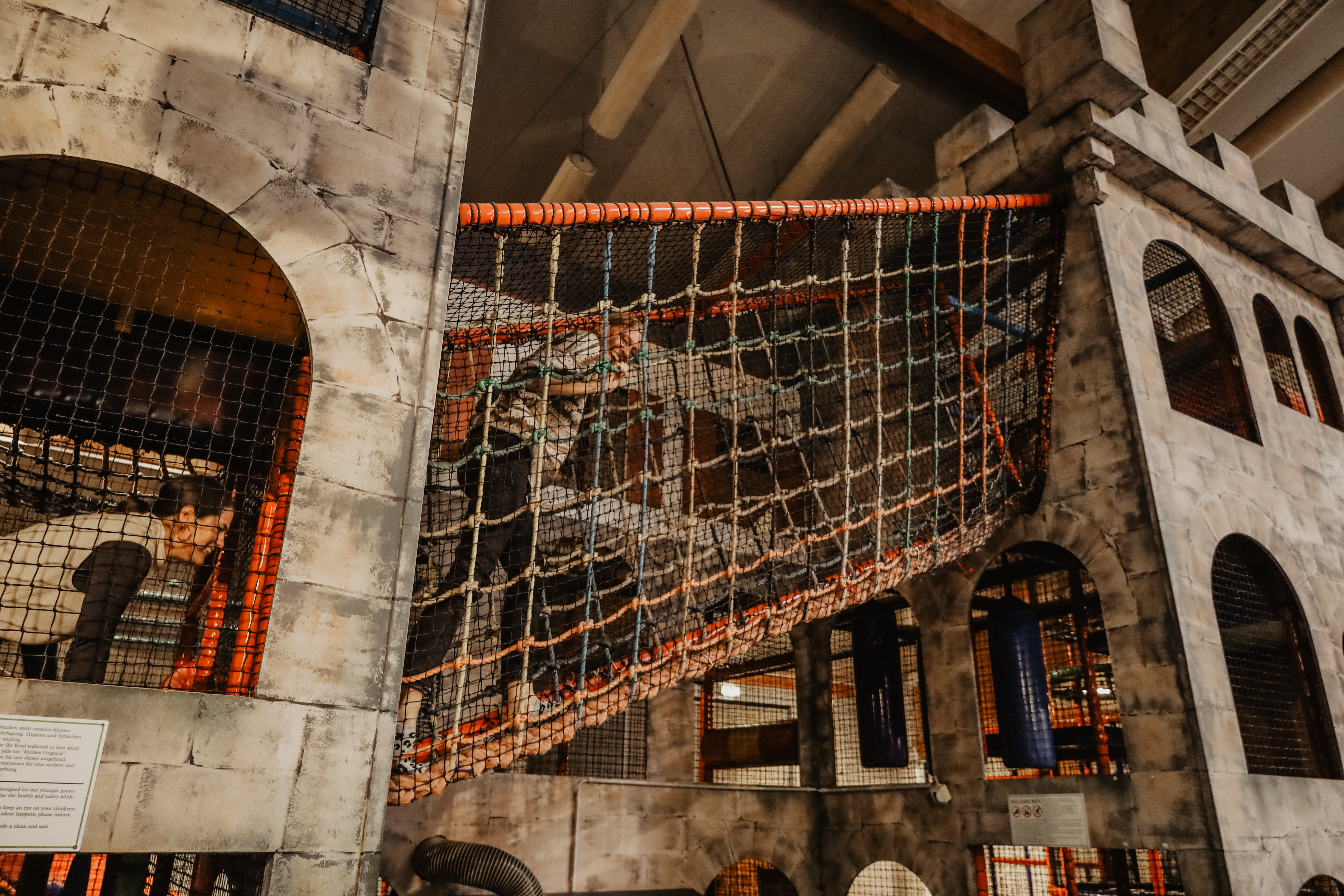 Außerdem verfügt der Park über ein riesiges Indoor-Spieleparadies. Hier können Familien viele Stunden verbringen – vor allem wenn das Wetter mal nicht so mitspielt. Bei unserer Ankunft war noch nicht viel los, deshalb haben wir die Zeit genutzt den Parcours einmal auszutesten. Es gibt diverse Klettergerüste, Bällebäder, digitales Torwandschießen und gegen Gebühr auch die Möglichkeit Billard zu spielen oder eine Bowlingbahn zu mieten.