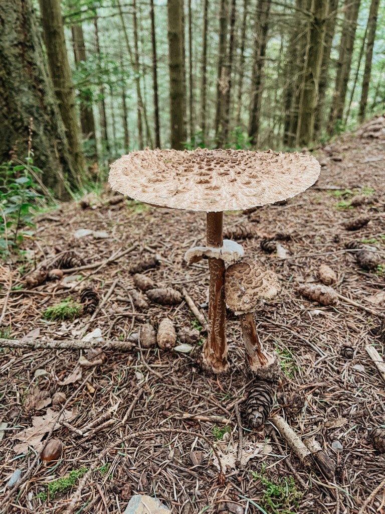 Diese Runde können wir absolut empfehlen. Das Tolle ist, das sie direkt am Wildgehege des Parks startet, das Auto kann also stehenbleiben. Die Wanderung besteht aus zwei kombinierten Rundwegen, die sich noch mal im Park treffen – also falls man was vergessen hat oder wie wir selbst gesammelte Pilze wegbringen möchte, kann man noch einen kurzen Stopp Zuhause einlegen.